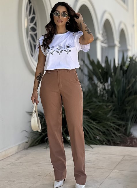 Calça em linho com elastano, tecido com aspecto rústico do linho, caimento leve e toque macio. A peça em modelagem reto segue modelo tradicional com abertura em braguilha, cós com passantes e bolsos faca. Os passantes dianteiros possuem detalhe com botão um toque contemporâneo e harmônico.