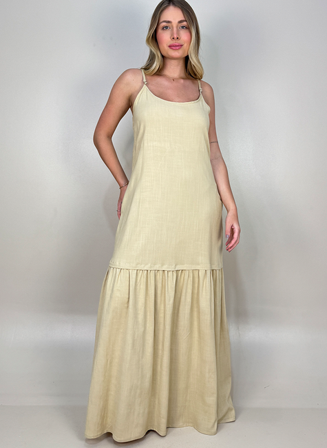 Peça parte da coleção de primavera verão 2026, intitulada Brisa. Inspirada na leveza do vento e na suavidade dos dias ensolarados, traduzindo a essência da marca com um olhar romântico, feminino e atual. Traz tecidos fluidos, texturas suaves, fibras naturais, formas que acompanham o corpo, babados estratégicos, alças delicadas, laços sutis e estampas femininas. A paleta traz cores suaves em tons pastéis, que abraçam o verão com serenidade combinadas a alguns tons estratégicos mais fortes.